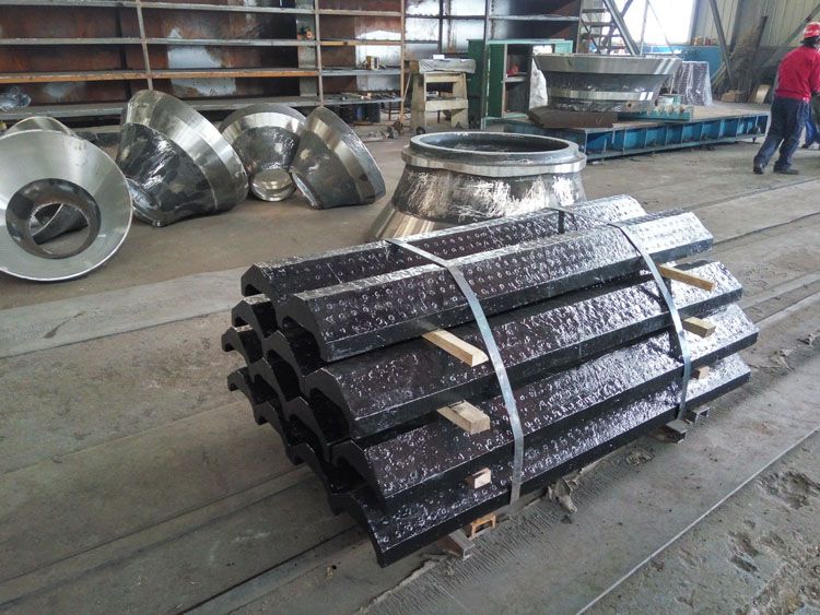 反击破衬板一般是高锰钢铸造而成的,反击式破碎机衬板的形状很多,主要有折线形和弧线形两类。折线形反击面能使在反击板各点上的物料都是以近似垂直方向进行冲击,因此可获得最佳的破碎效果。圆弧形反击面能使料块由反击板反弹出来之后,在圆心区形成激烈的冲击粉碎区,以增加物料的自由冲击破碎效果。